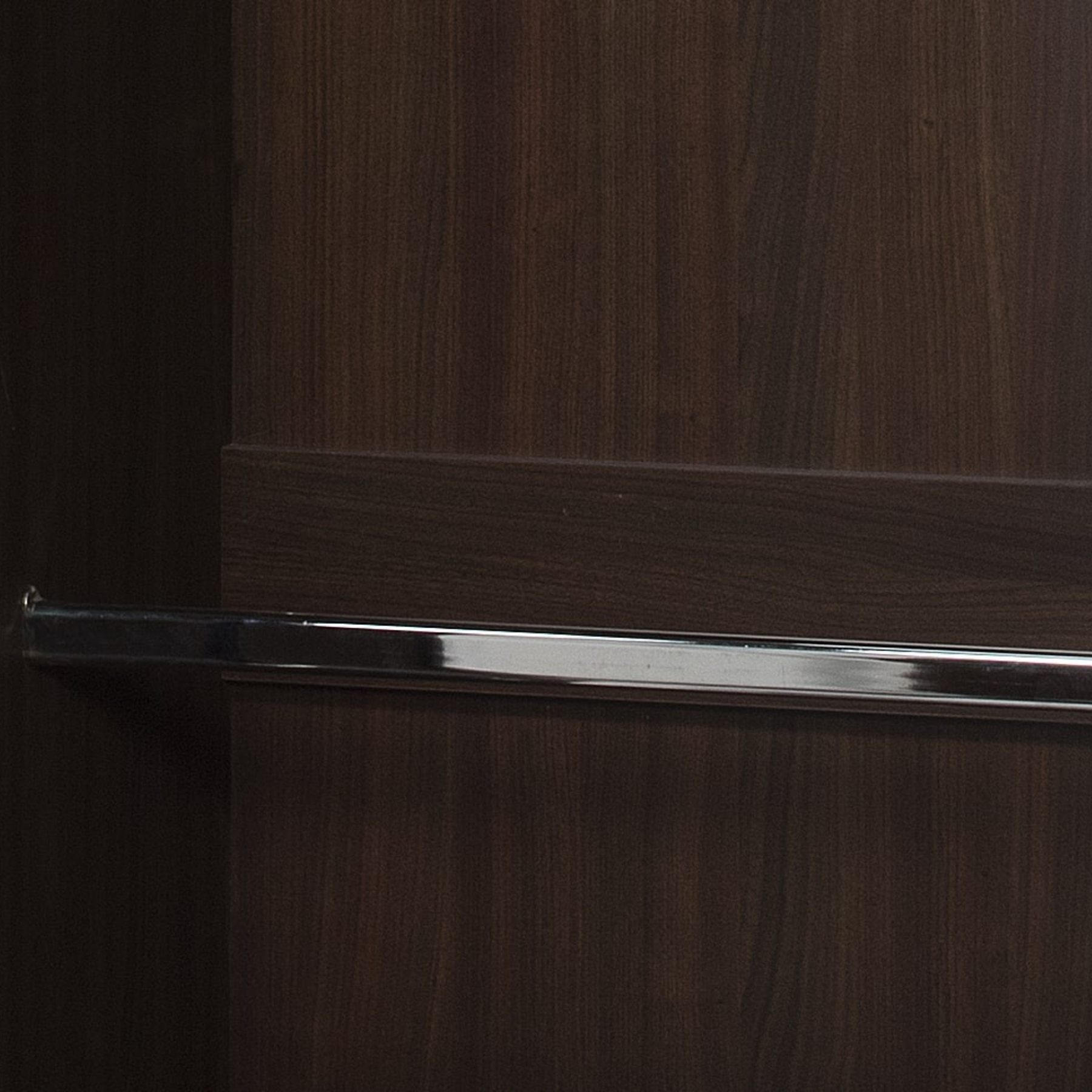 Die dreitürige Struktur umfasst eine zentrale Tür mit einem großen Spiegel, der den Raum optisch vergrößert und den Alltag praktischer macht. Im Inneren finden Sie eine ausgewogene Kombination aus Kleiderstangen und geschlossenen Fächern, die es Ihnen ermöglichen, Ihre Kleidung, Accessoires und Textilien bequem zu ordnen.